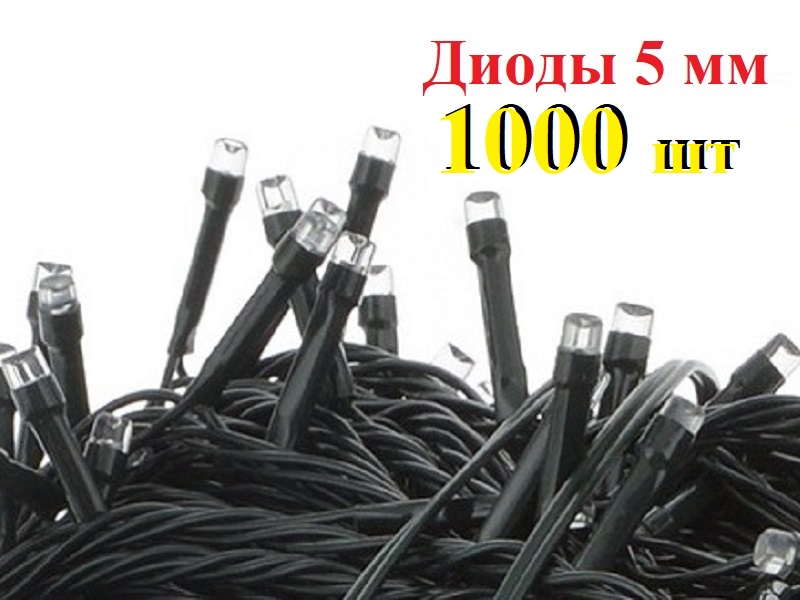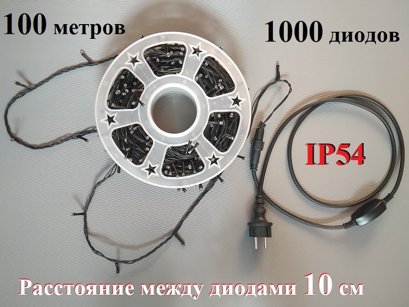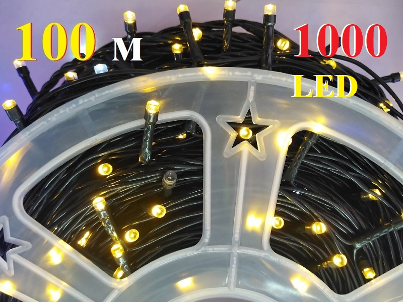 Уличная елочная гирлянда 100 метров теплые белые 1000 диодов создаст праздничное настроение на Новый год.