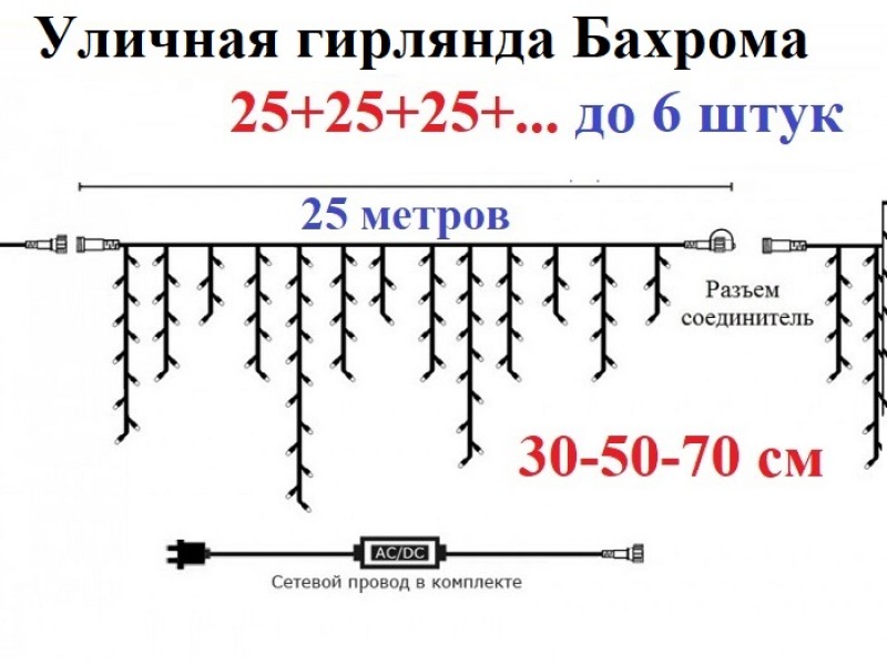 - Вид - бахрома. Длина нитей сосулек-бахромы: 30-50-70 см.