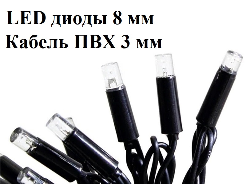 - Длина гирлянды - 3 метра + 1 метр провод с контроллером и вилкой для сети 220 Вольт.
