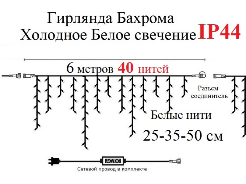Длина нитей сосулек 25-50 см.
