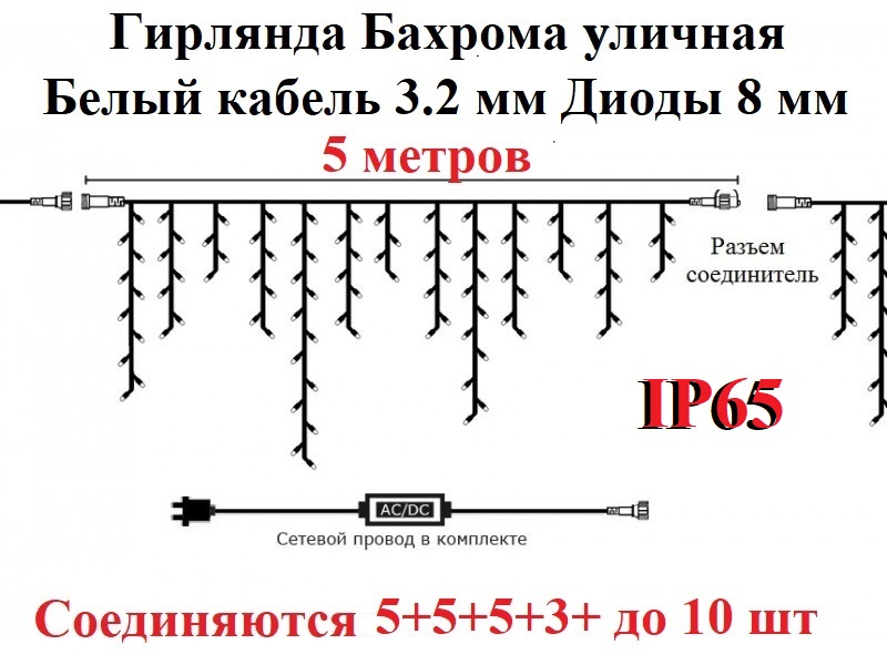 - Соединение в единую цепь до 10 гирлянд.