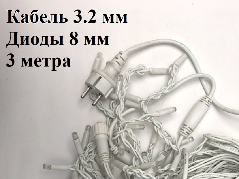 - Длина гирлянды - 3 метра + 1 метр провод с контроллером и вилкой для сети 220 Вольт.