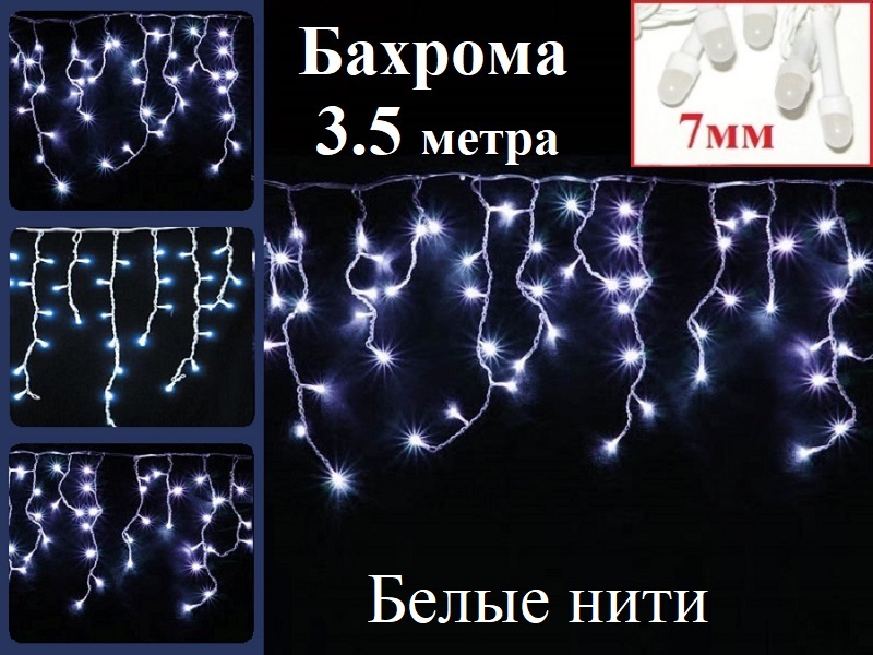 Новогодняя гирлянда "Светодиодная белая бахрома 160 Led 30-40-60 см" украсит на Новый год окна и стены вашего дома множеством белых огней в форме сосулек или дождика. Мерцающие белые огни.