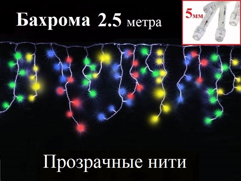 Цветная гирлянда бахрома 2,5 метра 8 режимов свечения украсит окна и стены вашего дома.