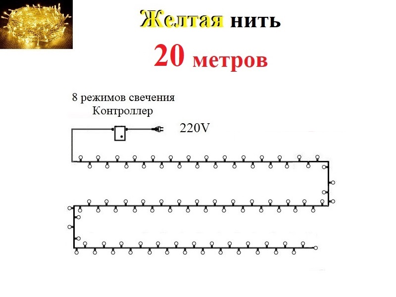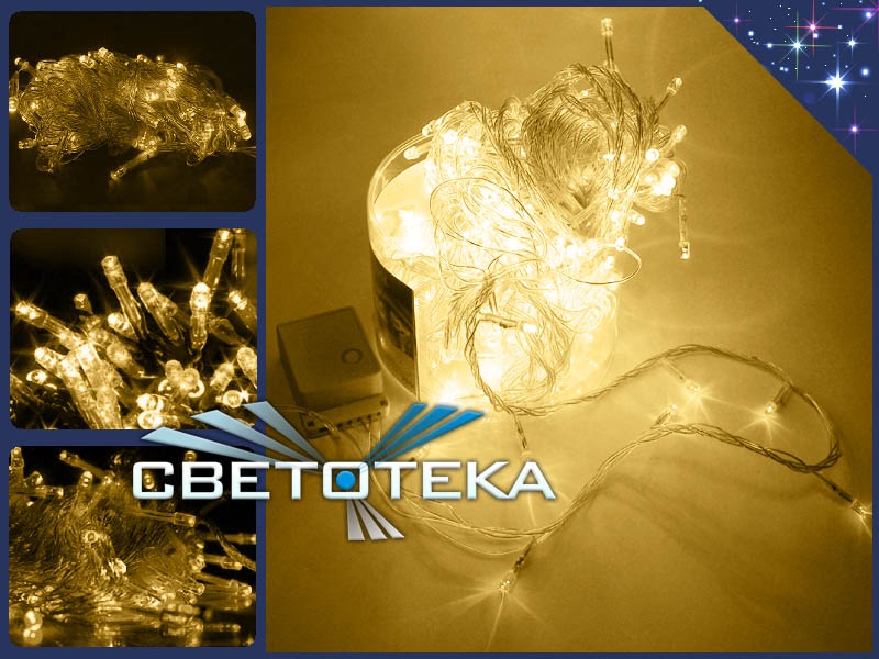 Светодиодная желтая елочная гирлянда 20 метров прозрачная нить украсит мерцающими желтыми огоньками ваш новогодний праздник, они завораживают и создают праздничное настроение.