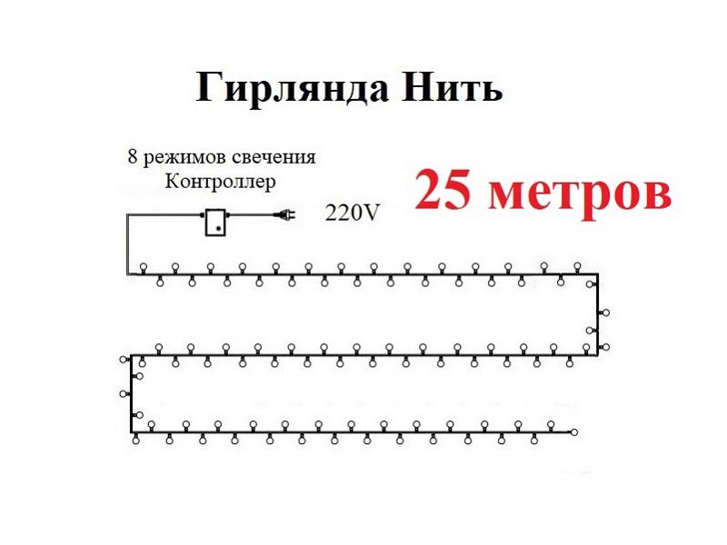 Цветная елочная гирлянда черная нить 25 метров с контроллером украсит яркими цветными огнями вашу елку на Новый год и создаст сказочное настроение.