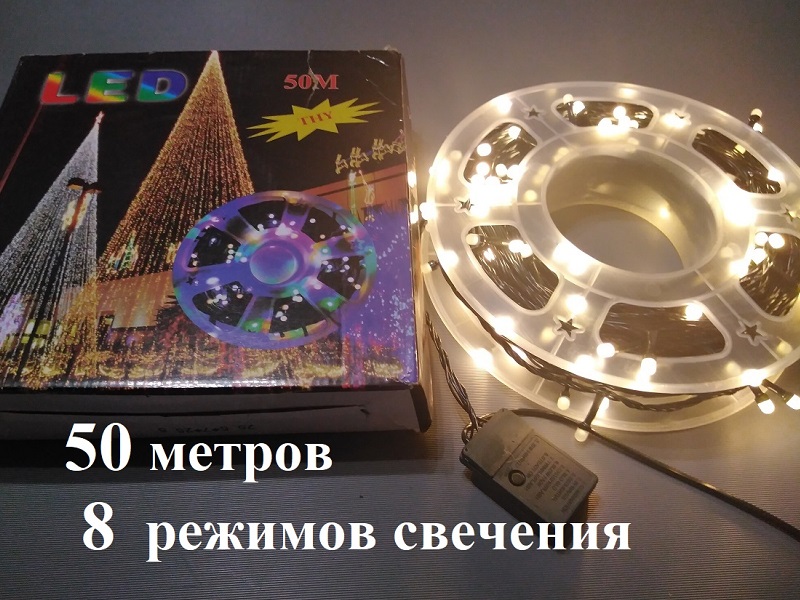 - Желтый (теплый белый) свет свечения 8 режимов. Без мерцания белых огней.