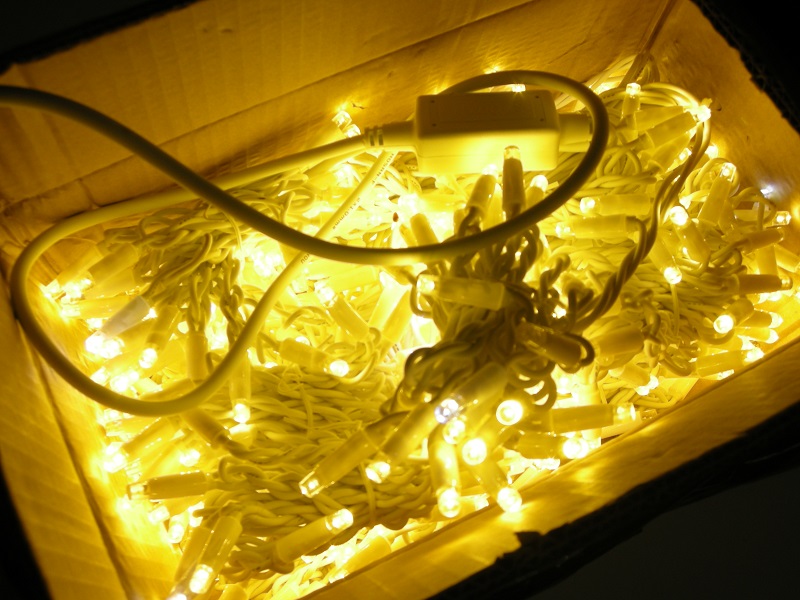 - Размер светодиодов 8 мм. Температура свечения - теплый белый..