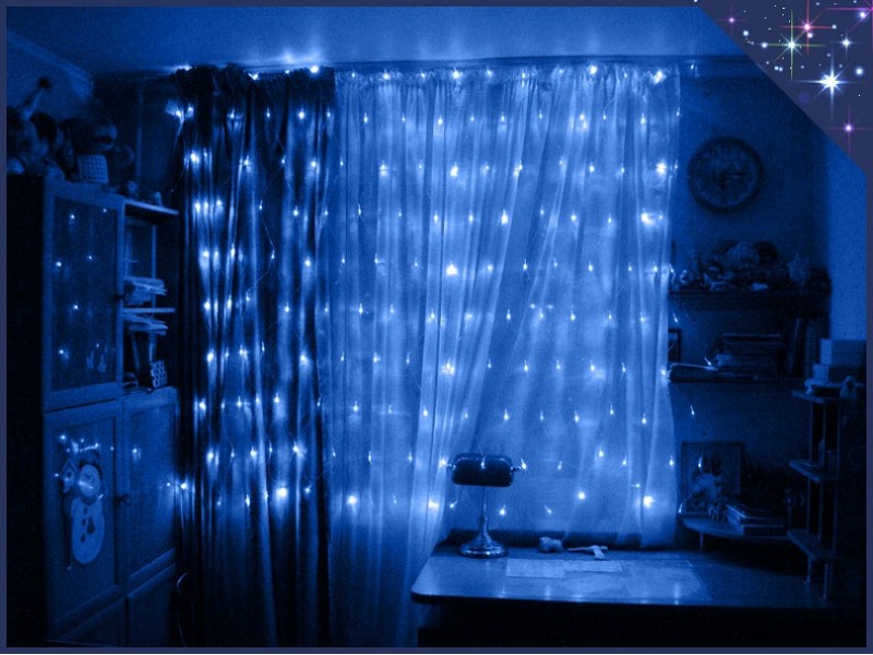 Светодиодная гирлянда Синяя штора 1,5 х 1,5 метра водопад на окно с эффектом падающей капли