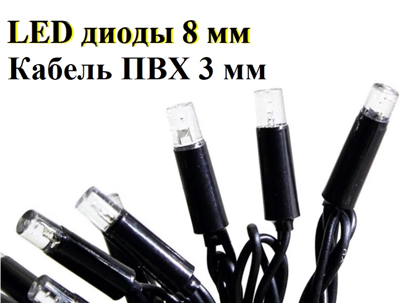 - Длина гирлянды - 3 метра + 1 метр провод с контроллером и вилкой для сети 220 Вольт.