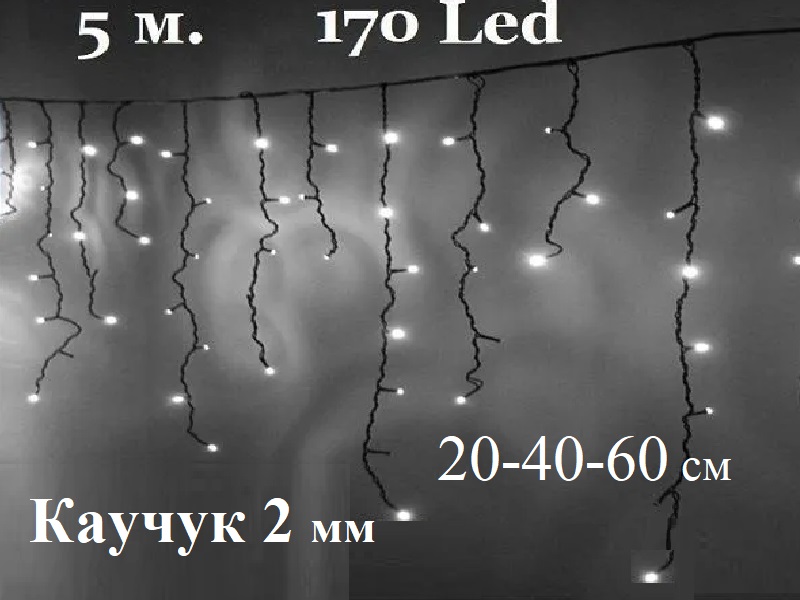 Уличная гирлянда "Светодиодная бахрома 5 метров 170 LED" с огоньками белого цвета с белым мерцанием празднично украсит фасады зданий, окна и карнизы домов.