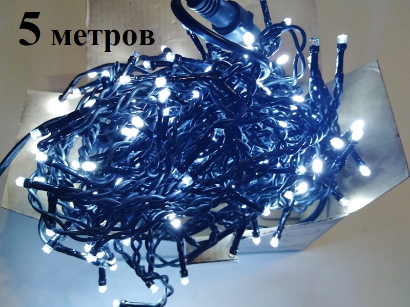 Длина гирлянды - 5 метров + 1 метр провод с контроллером и вилкой для сети 220 Вольт.