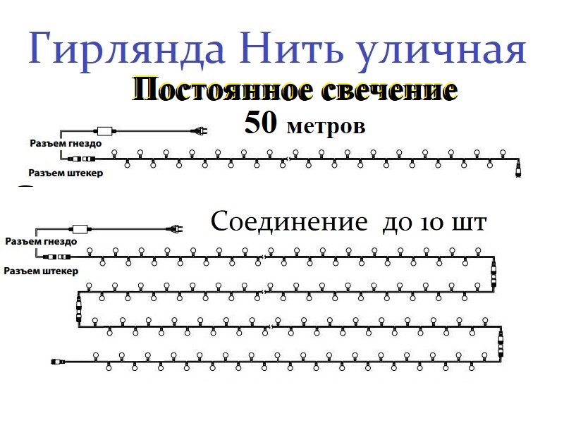 Соединяется в 1 нить 50+50+50+50+ до 10 шт.