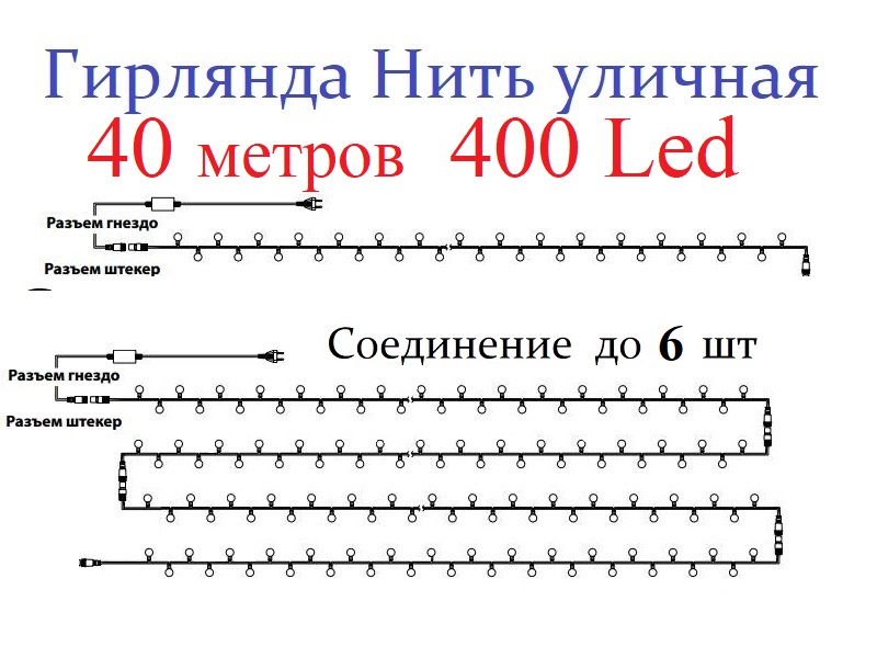 Длина провода - 40 метров + cетевой провод с вилкой для сети 220V.