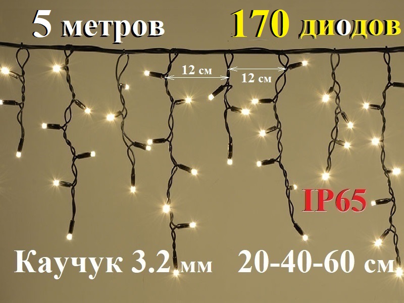 - Вид - бахрома. Длина нитей сосулек 20-40-60 см.