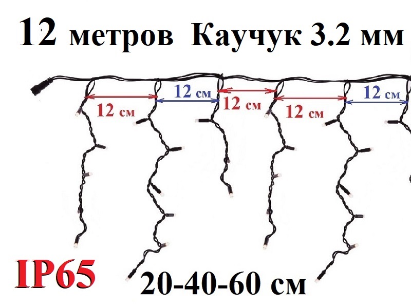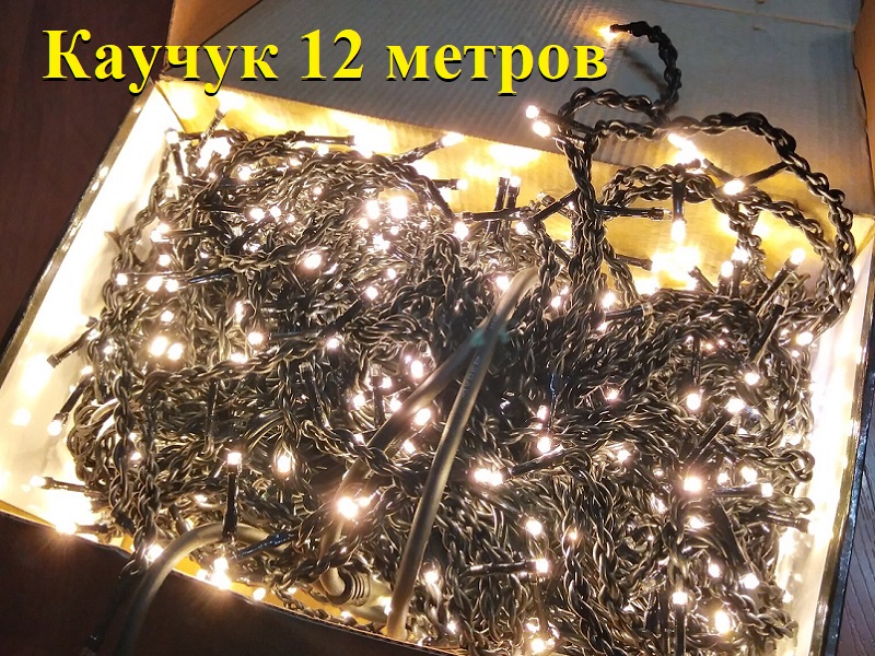 - Длина гирлянды - 12 метров + 1 метр провод с контроллером и вилкой для сети 220 Вольт.