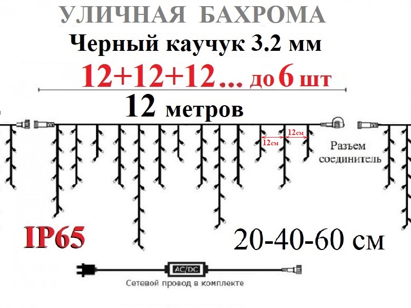 - Вид - бахрома. Длина нитей сосулек 20-40-60 см.