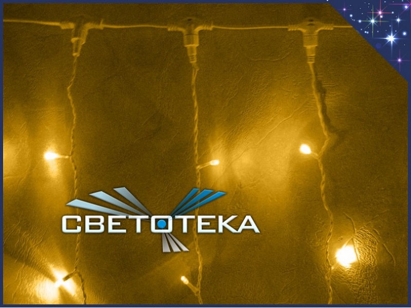 Желтая уличная гирлянда "Светодиодный штора занавес 3х2 метра желтое свечение с белым мерцанием".
